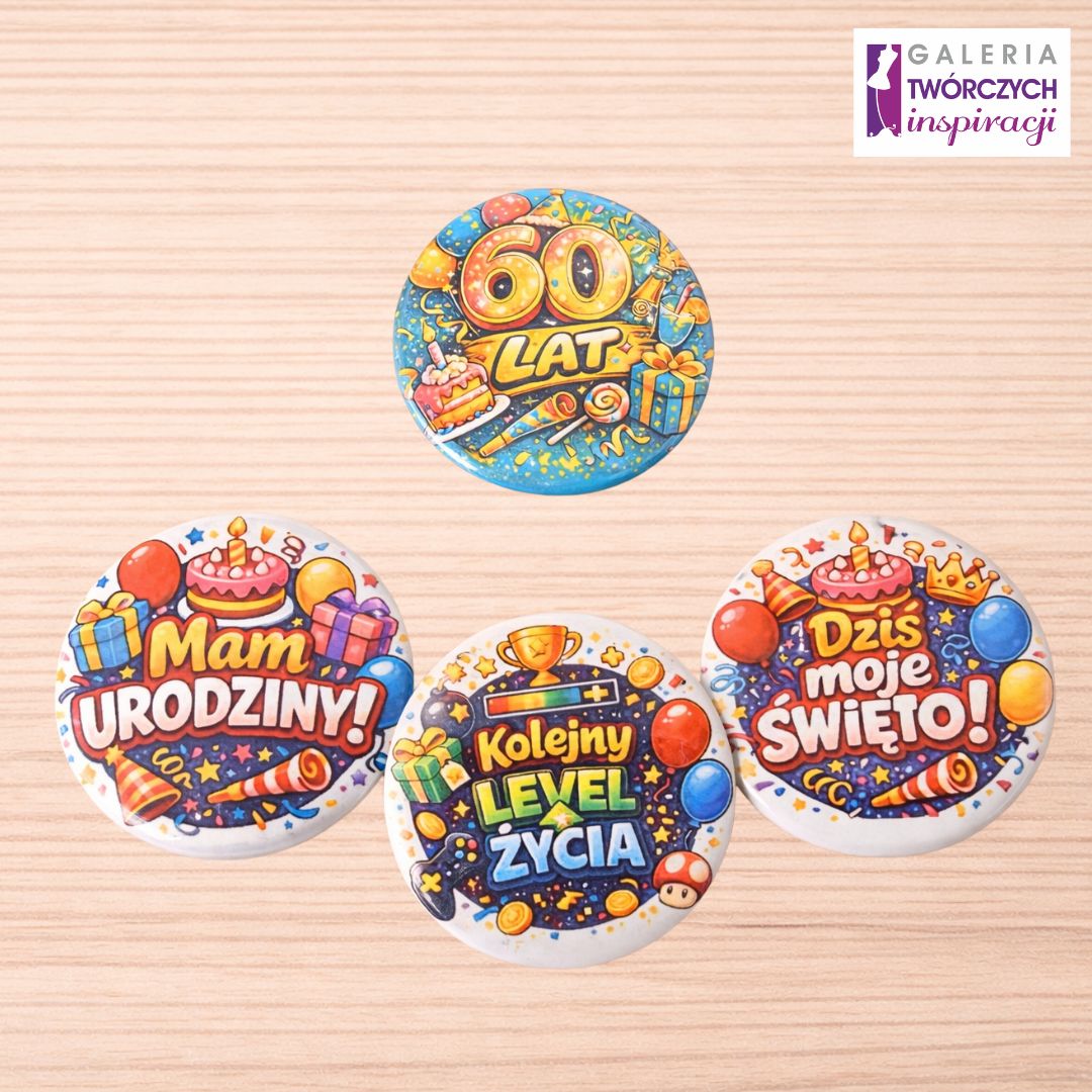 Kolorowe i pełne urodzinowej energii przypinki to idealny dodatek na imprezę oraz świetny sposób na wyróżnienie solenizanta! Każda przypinka wykonana jest z metalu o średnicy 56 mm i posiada trwały, intensywny nadruk, który przyciąga wzrok i doskonale prezentuje się na zdjęciach z przyjęcia.