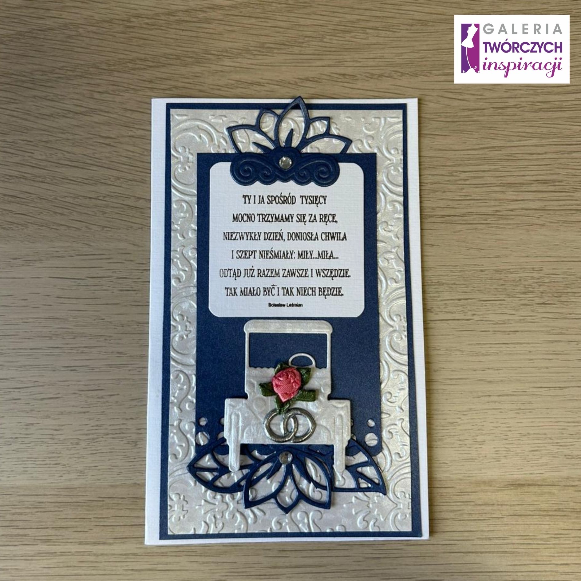 Elegancka, ręcznie robiona kartka okolicznościowa z romantycznym cytatem, idealnie sprawdzi się jako wyjątkowa pamiątka ślubu, rocznicy lub innej ważnej uroczystości dla bliskiej osoby.