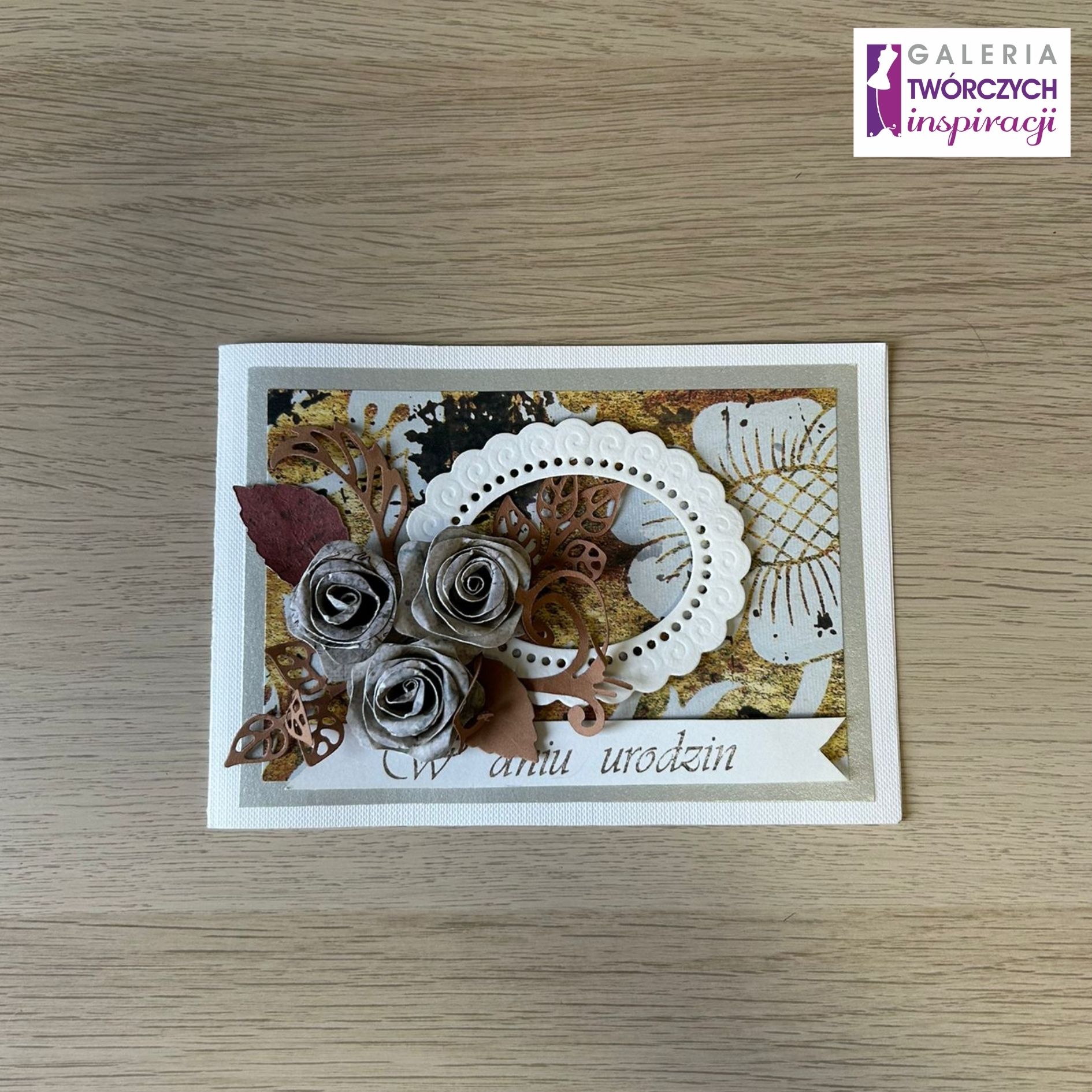 Elegancka, ręcznie robiona kartka okolicznościowa „W dniu urodzin”, idealnie sprawdzi się jako wyjątkowy dodatek do prezentu dla bliskiej osoby z okazji urodzin.