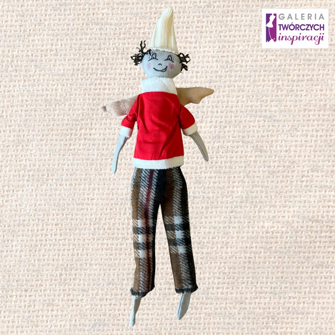 Urocza lalka tekstylna w formie skrzata z delikatnymi skrzydełkami i kolorowym strojem. Jej pogodny wyraz twarzy oraz starannie dobrane detale nadają jej wyjątkowego, przyjaznego charakteru. Idealna jako zabawka dla dziecka, dekoracja pokoju lub oryginalny prezent.