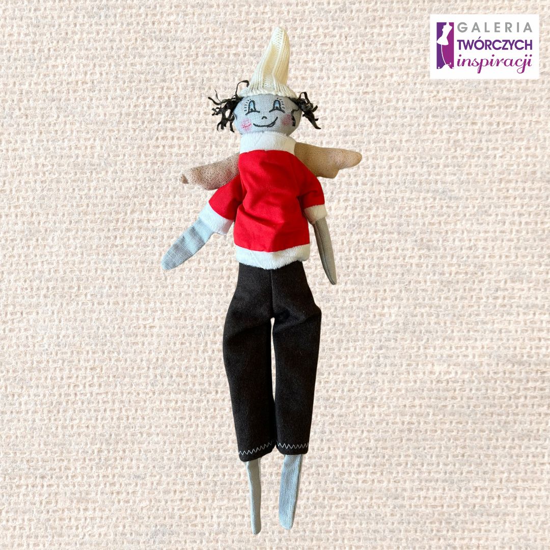 Urocza lalka tekstylna w formie skrzata z delikatnymi skrzydełkami i kolorowym strojem. Jej pogodny wyraz twarzy oraz starannie dobrane detale nadają jej wyjątkowego, przyjaznego charakteru. Idealna jako zabawka dla dziecka, dekoracja pokoju lub oryginalny prezent.