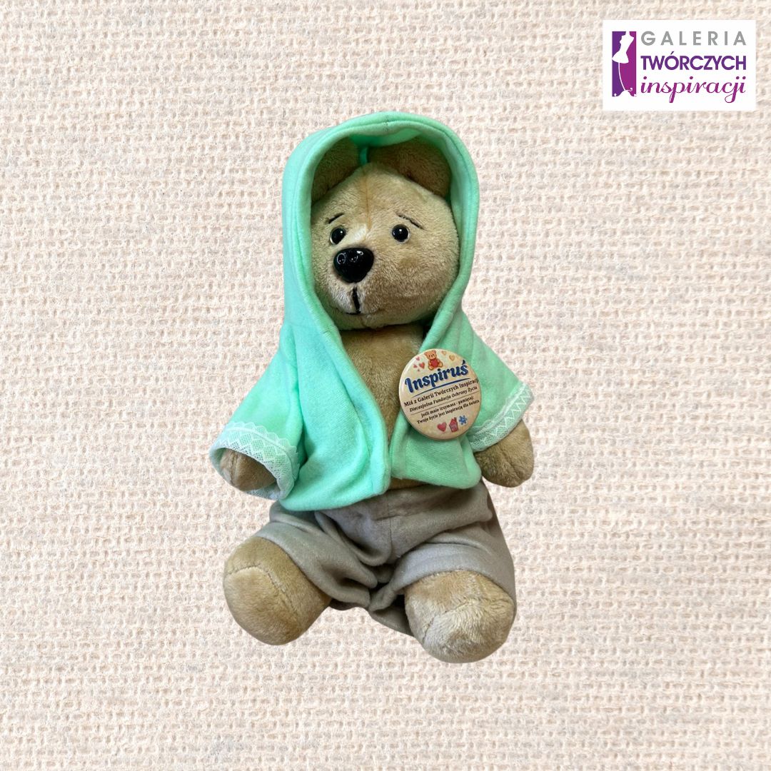 Wyjątkowy, ręcznie wykonany miś „Inspiruś”, stworzony z sercem i dbałością o każdy detal. Każdy egzemplarz powstaje indywidualnie, dzięki czemu jest niepowtarzalny – tak jak historie, które niesie ze sobą.