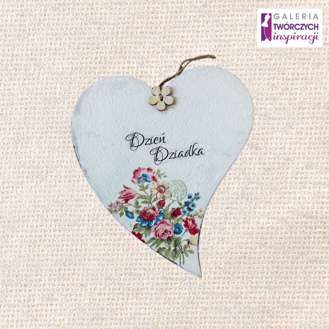 Tabliczka drewniana w kształcie serca ,,Dzień Dziadka'' - 18 x 20 cm